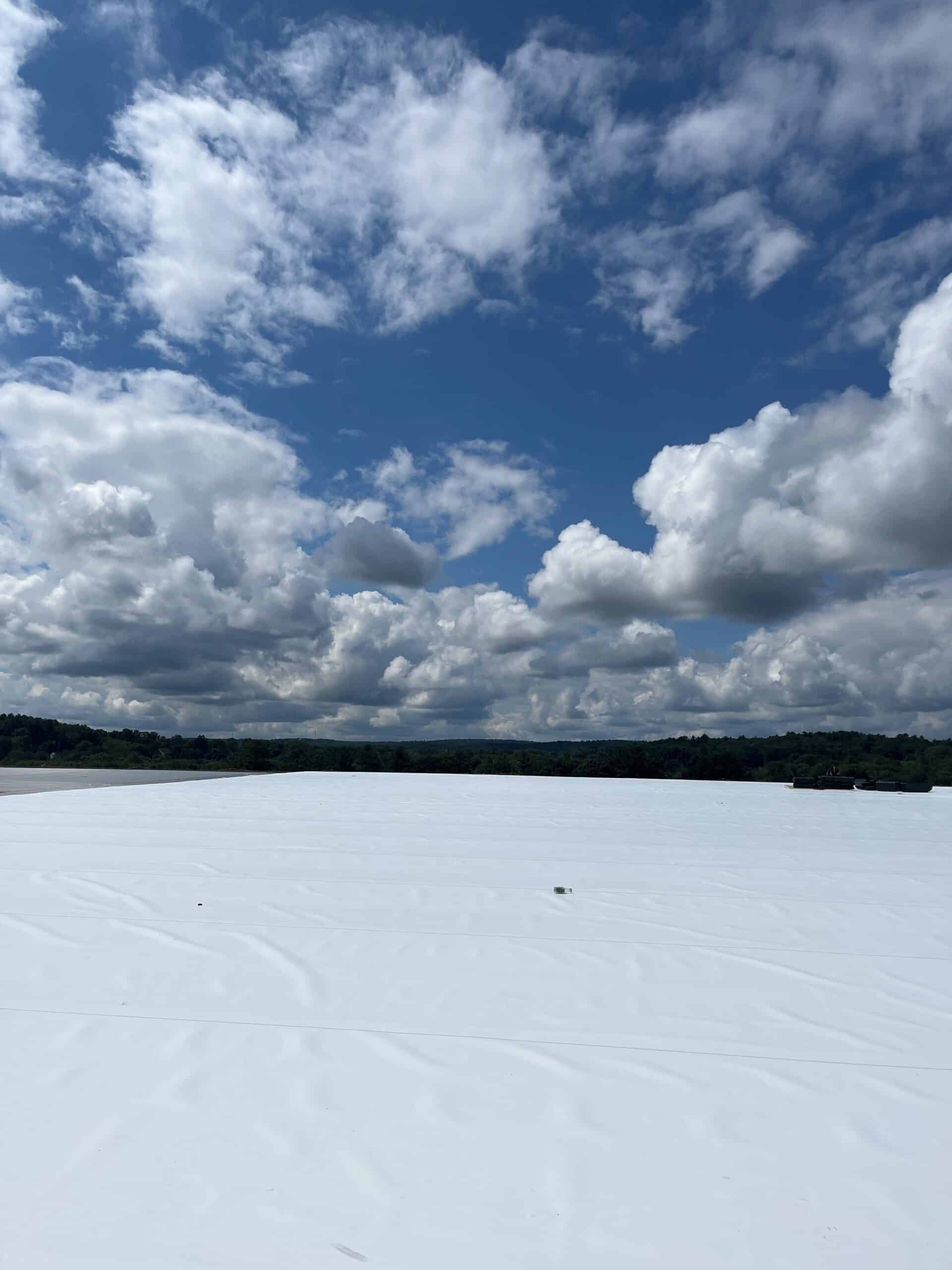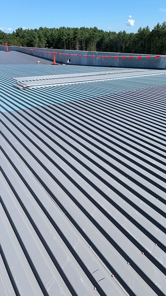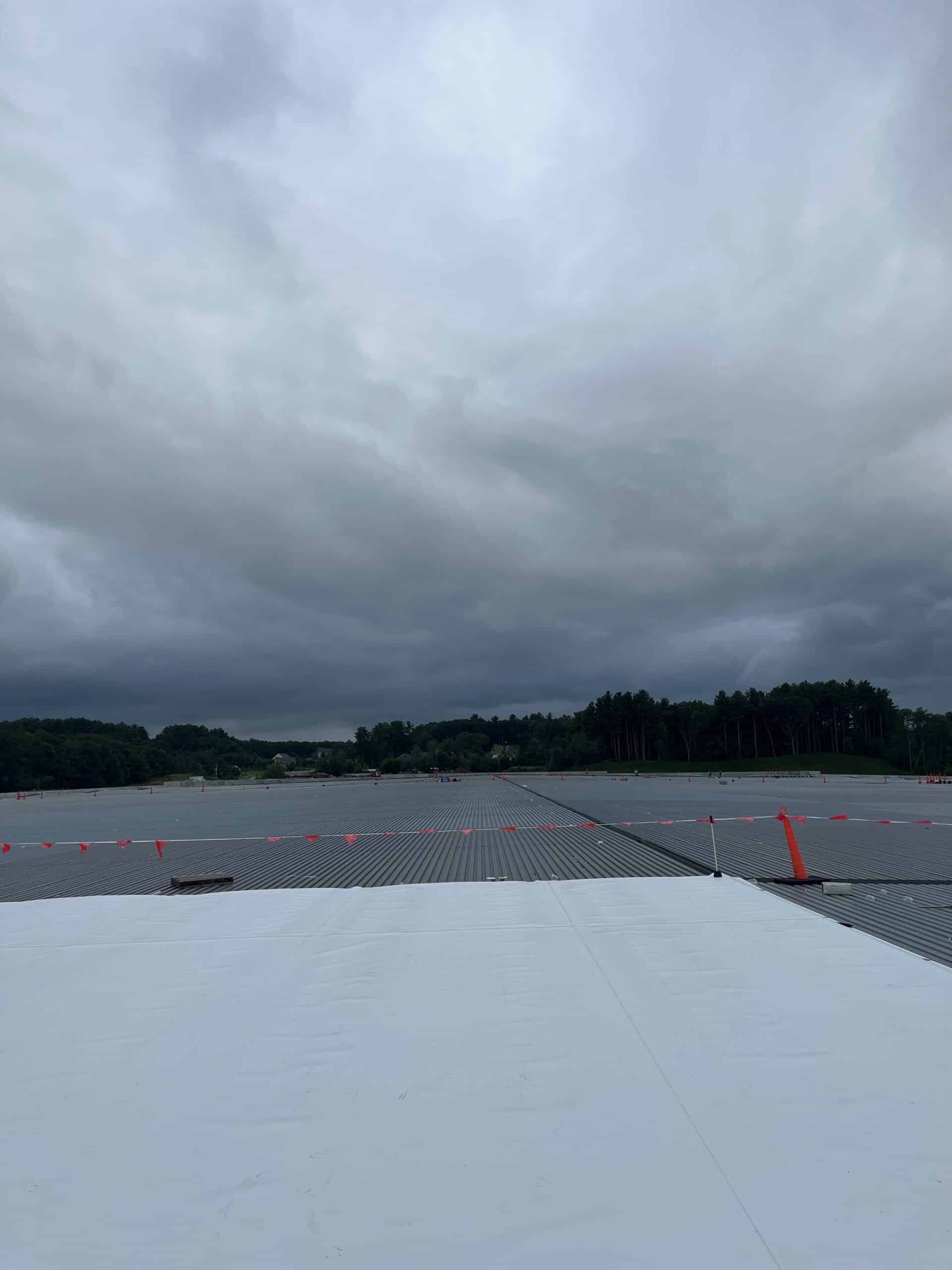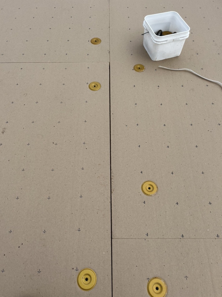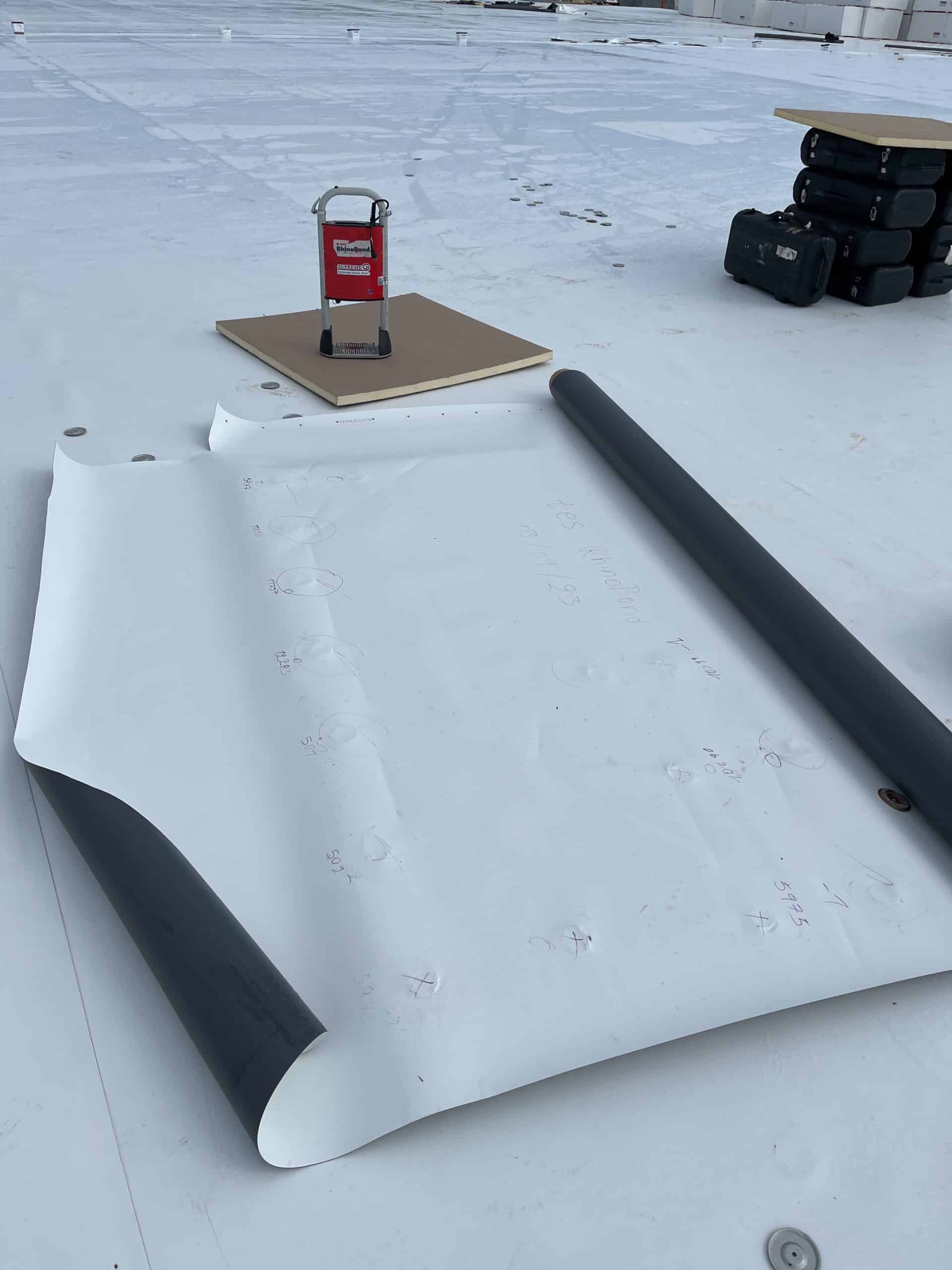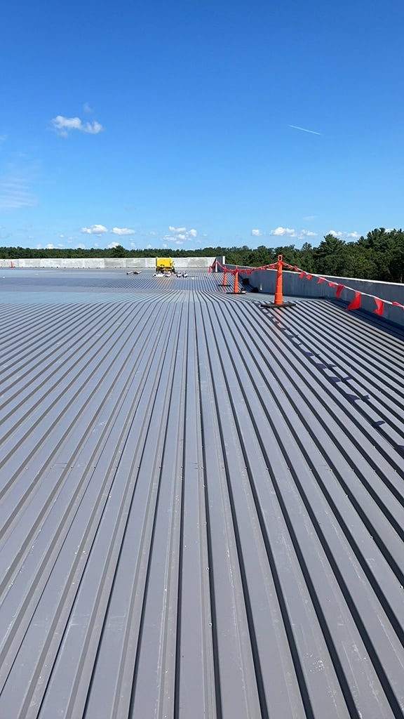 The primary roofing material for this project was GAF EverGuard TPO 60 mil, installed to meet GAF requirements for a 15 year Diamond Pledge NDL guarantee with a 72 mph wind addendum. Work was performed over a 22 gauge steel deck using a two-step insulation system: 1.75 inch EnergyGuard PolyIso was first loose laid, then a second 1.75 inch layer was mechanically fastened with Drill-Tec XHD fasteners and RhinoBond TPO plates. Fastening density increased from field to perimeter to corners for improved wind performance. After insulation installation, the EverGuard TPO membrane was installed per GAF specifications to complete the warranted assembly.