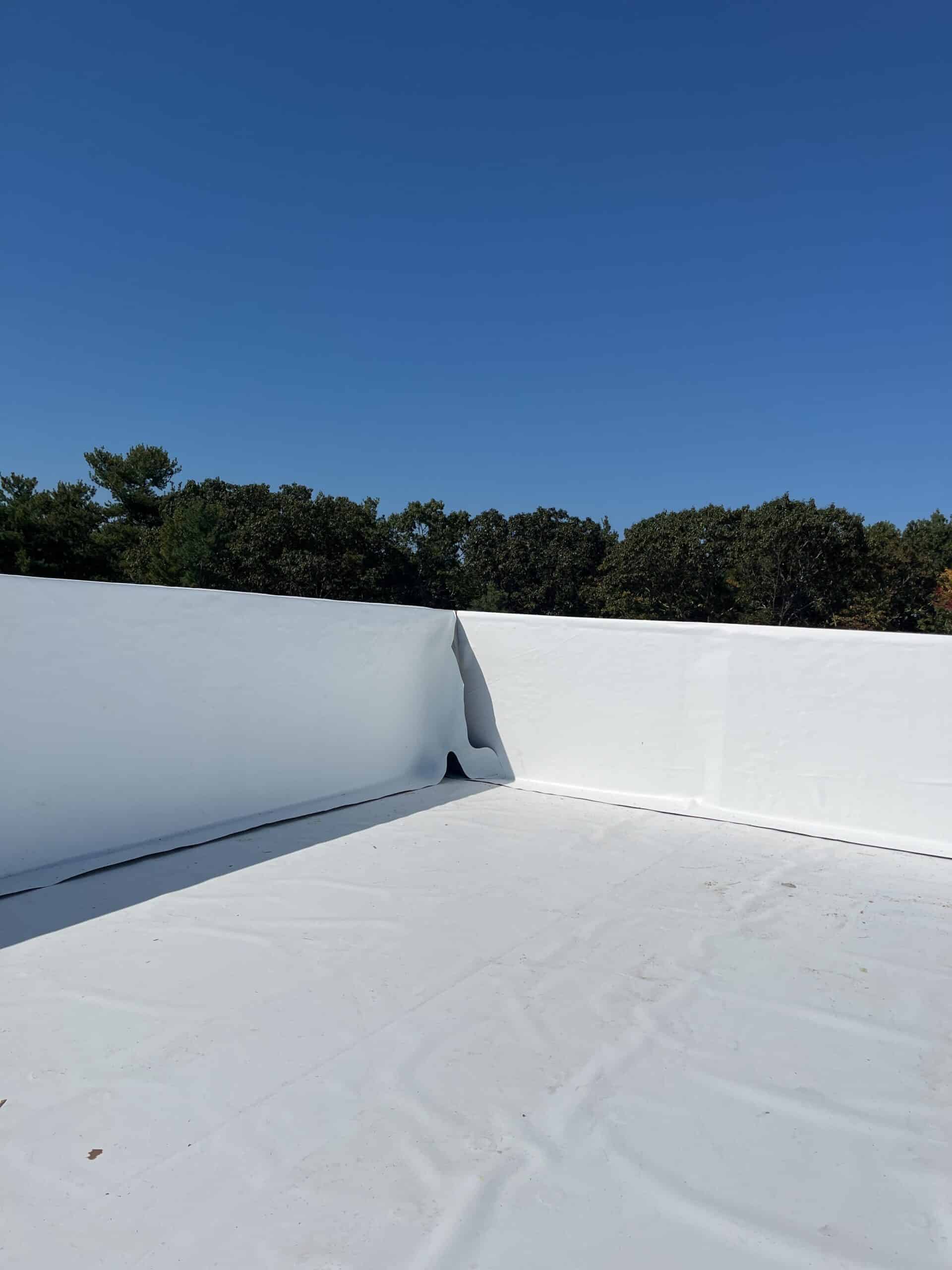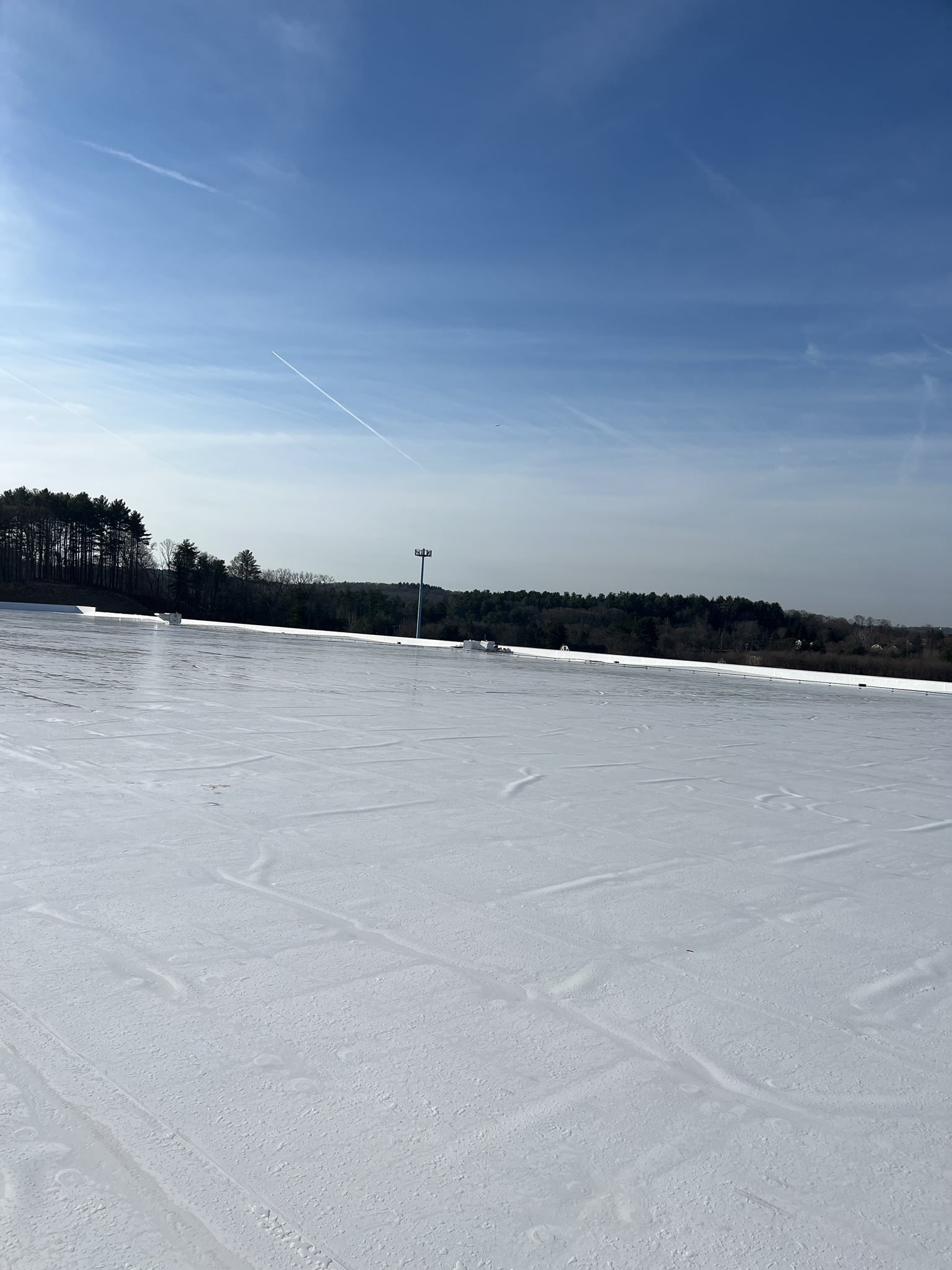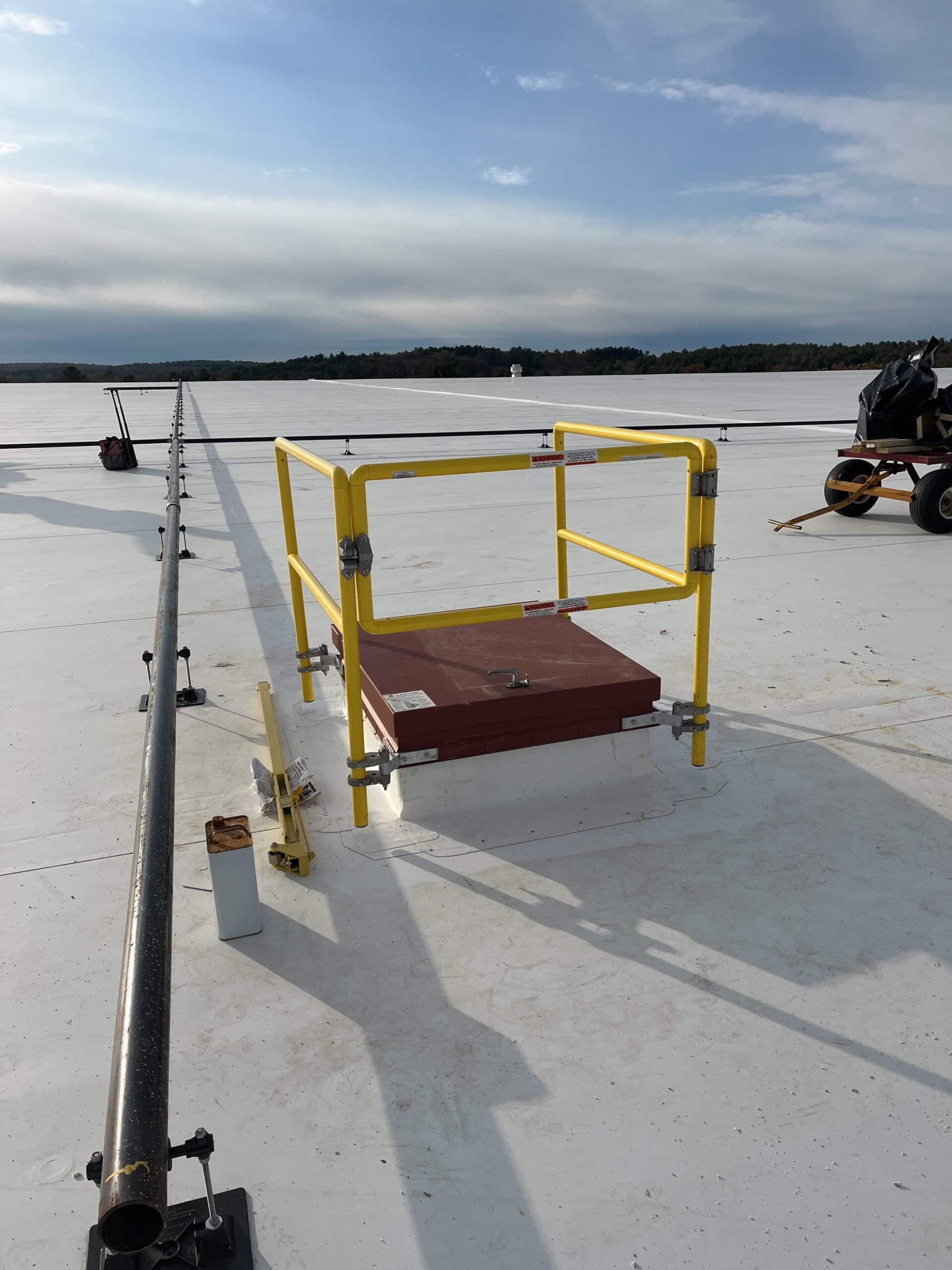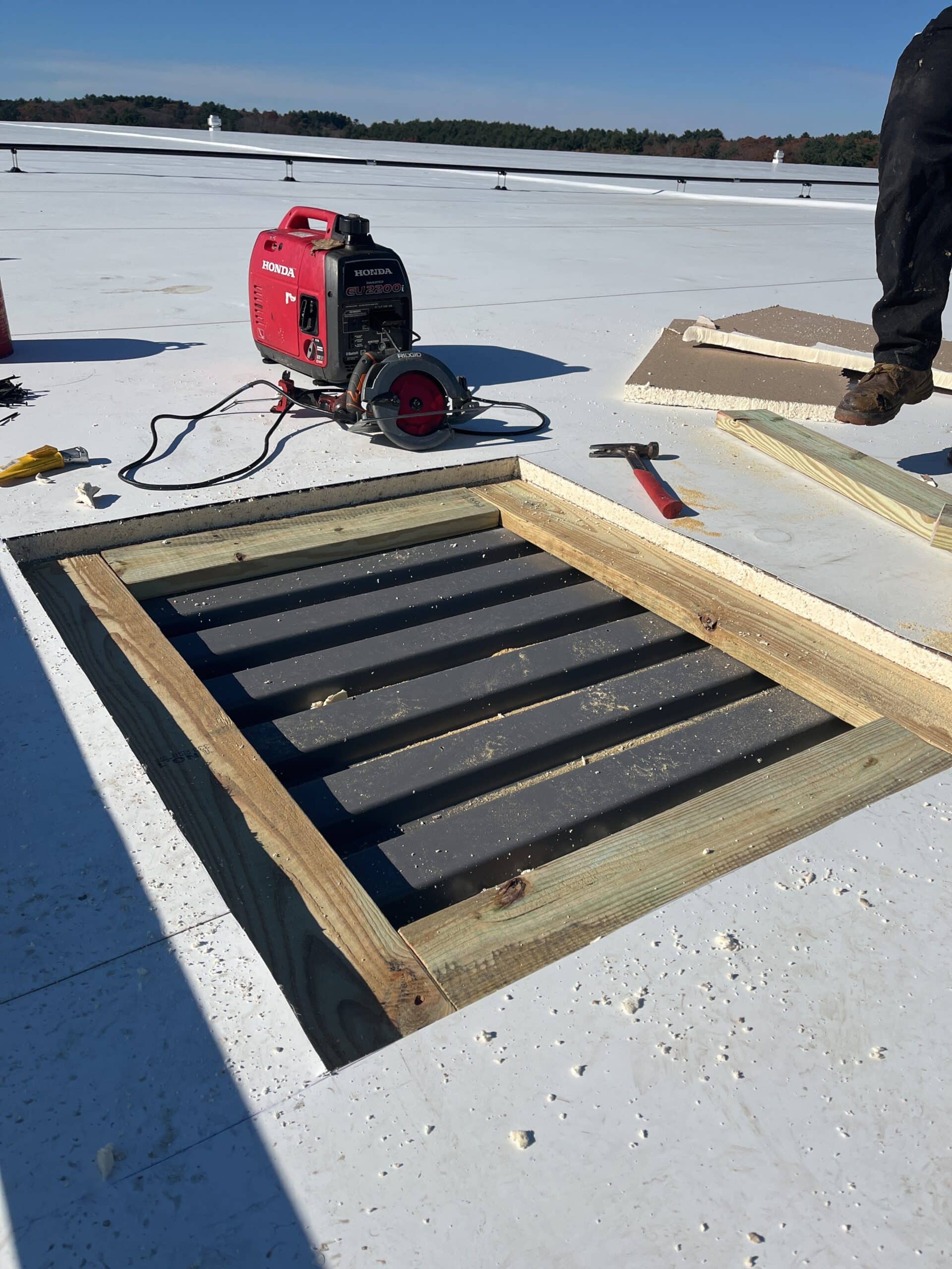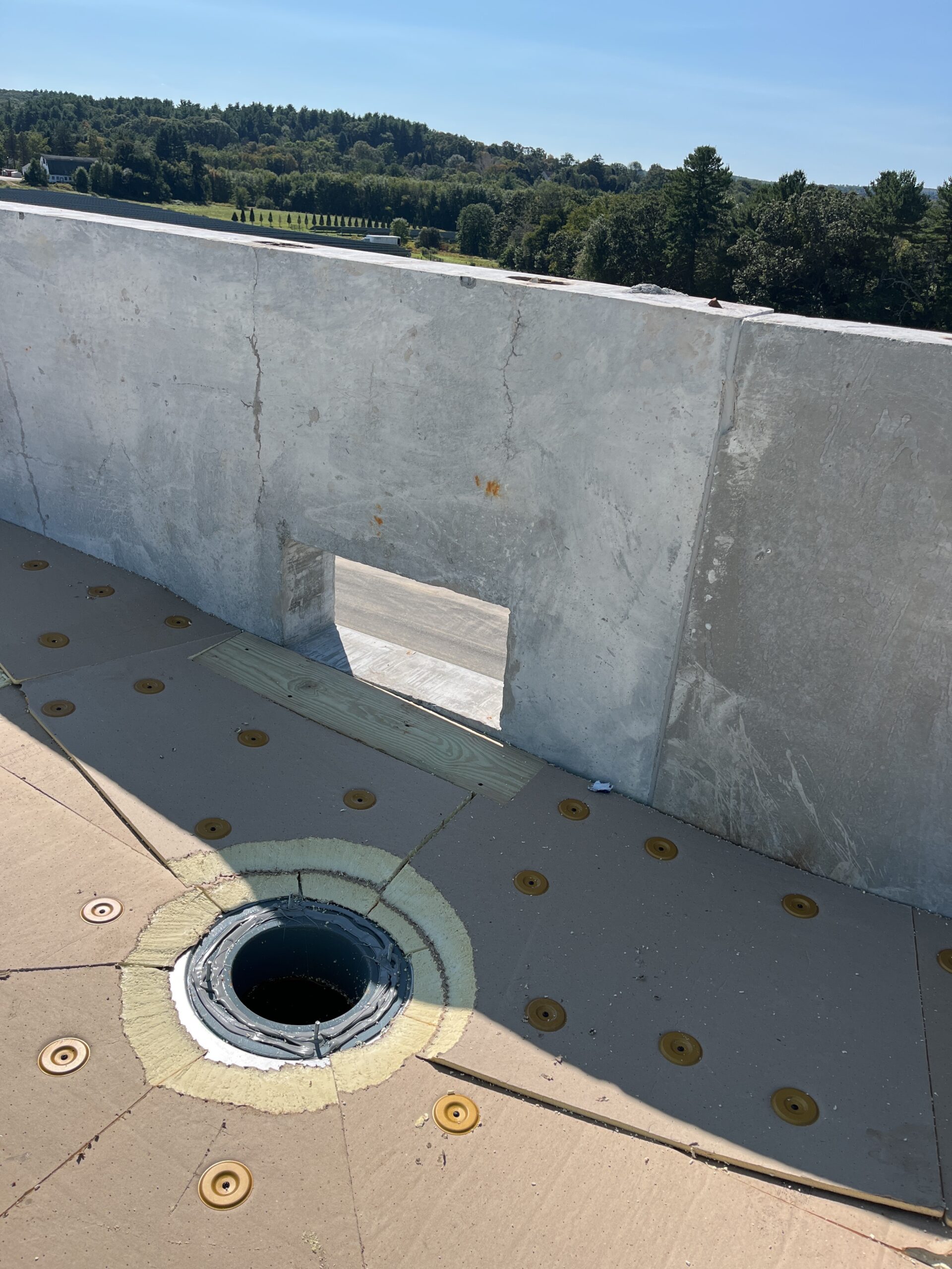 The primary roofing material for this project was GAF EverGuard TPO 60 mil, installed to meet GAF requirements for a 15 year Diamond Pledge NDL guarantee with a 72 mph wind addendum. Work was performed over a 22 gauge steel deck using a two-step insulation system: 1.75 inch EnergyGuard PolyIso was first loose laid, then a second 1.75 inch layer was mechanically fastened with Drill-Tec XHD fasteners and RhinoBond TPO plates. Fastening density increased from field to perimeter to corners for improved wind performance. After insulation installation, the EverGuard TPO membrane was installed per GAF specifications to complete the warranted assembly.
